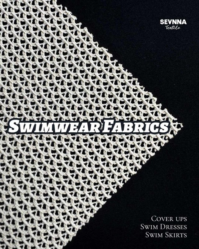 At SEVNNA TEXTILE, there're the knit weaving circular department and woven team to handling all kinds of swimwear textured fabrics for Mesh, Crochet and some other fabrics
